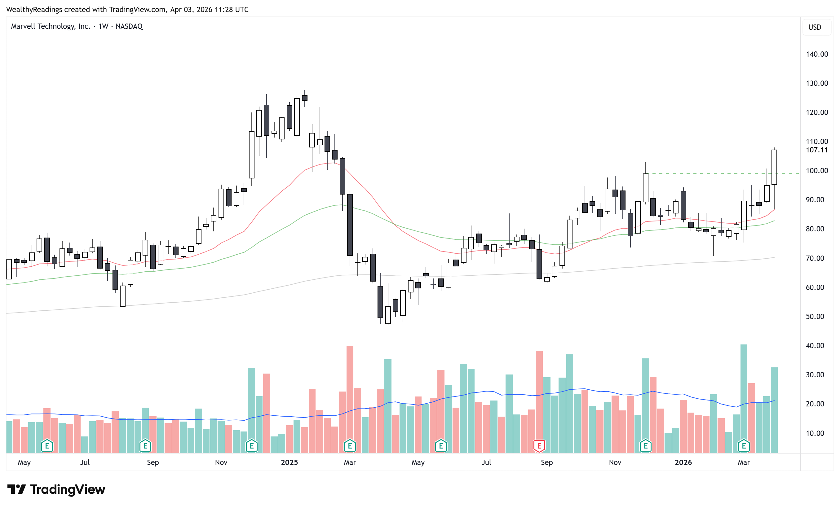 The stock saw a healthy breakout on large volume post Nvidia’s investment and any retest ~$100 seems like a great entry.