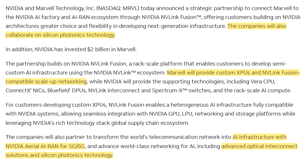 For the sake of clarity, while Marvell is only an architect - and specializes in optimized connectivity which is why it is such a key player in SiPho, Broadcom also has manufacturing capacities. Just to be thorough.