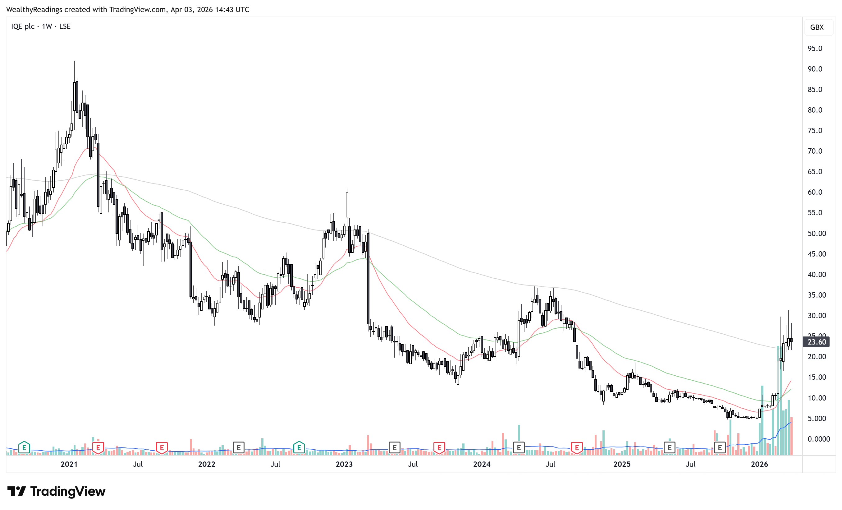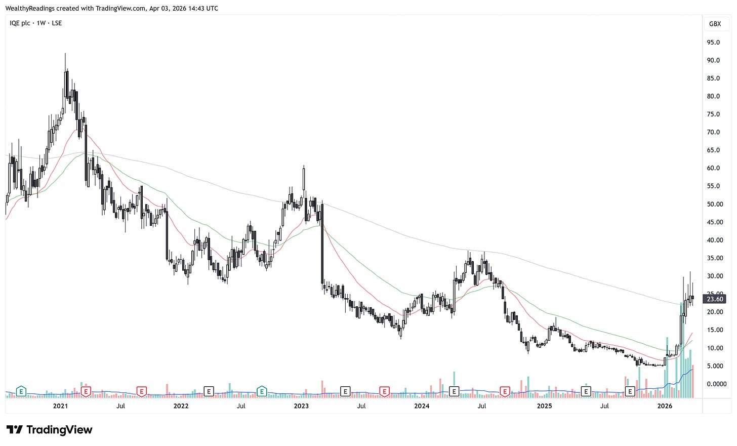 It won’t surprise you if I tell you that IQE is up 382% year-to-date I guess. And yet, compared to the rest of the sector this isn’t much as the stock is only up 122% since 2025, while being the go-to company for epitaxy. The stock has been on a downtrend since 2017 as the need for epi-wafers was very niche and never met expectations, until this year, with demand for lasers growing.