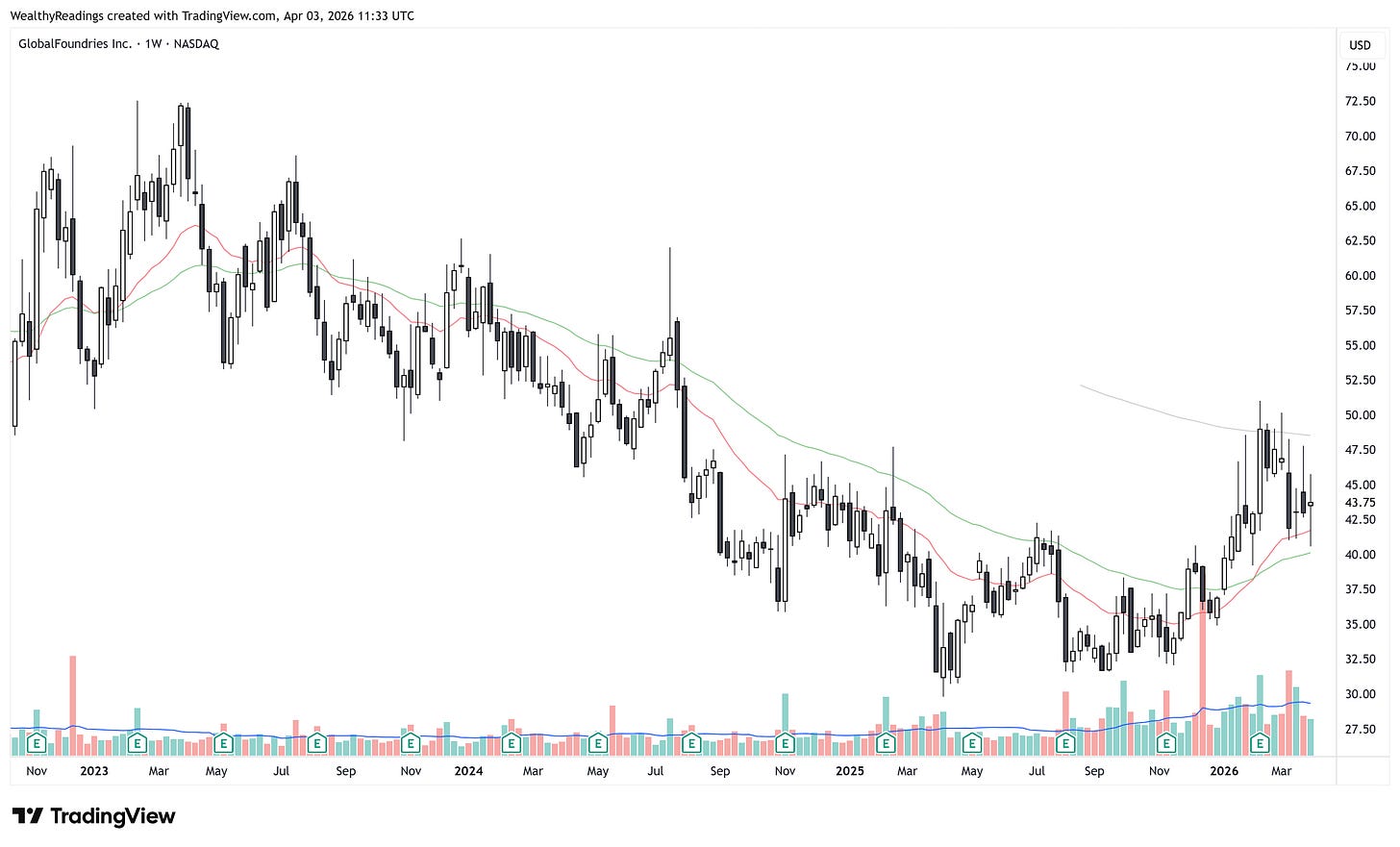 To me, GFS is the right play today with the perfect chart signaling accumulation at low valuation with a perfect retest of the W50 given this week ~$42, the price I highlighted in my review.