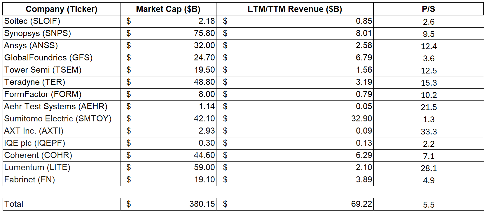 I have a detailed write up on Soitec, its business and its importance in the supply chain. They manufacture SOI wafers - a very specific wafer architecture optimized for photons, which are the industry standard for SiPhos, and not only do they manufacture them but they also own the patent for the industry standard technology to do so.