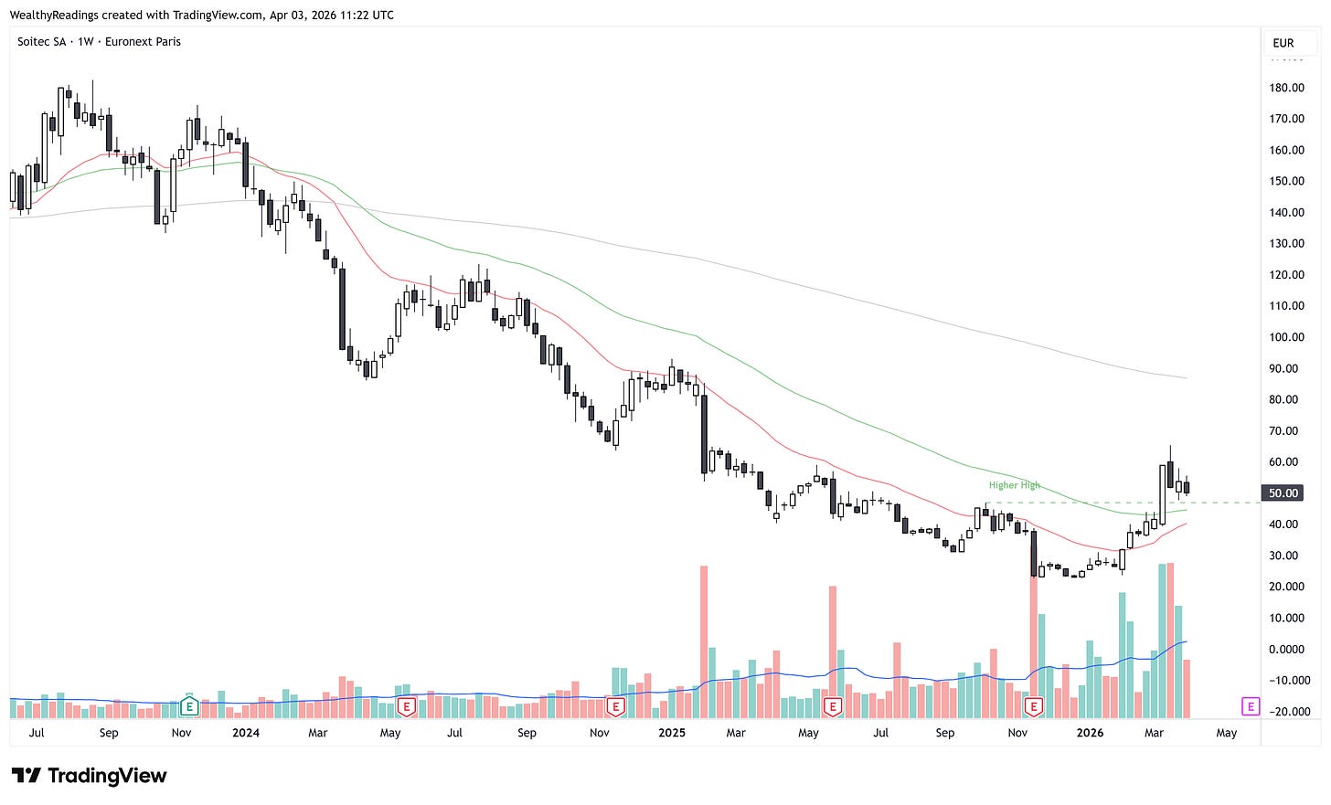 As noted in my detailed review, Soitec is in the sweet spot to start an investment in my opinion - I own it, after a clear W50 breakout on massive volume after years of downtrend as its core business declined.