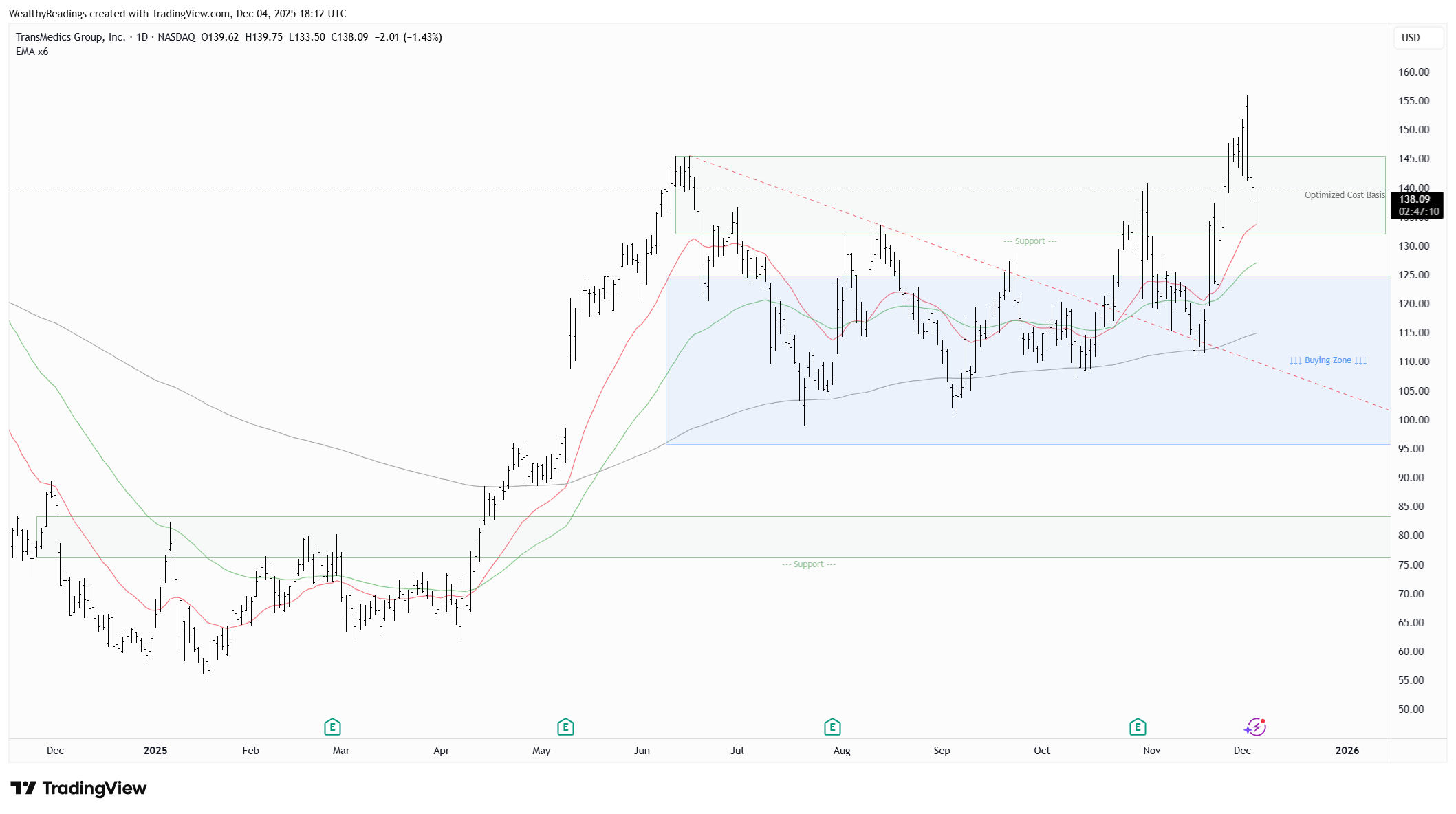 I said I wouldn’t buy more Transmedics two days ago, unless the stock came back into its range. I assumed we’d run higher first, then retest the $150 breakout. I also said on my valuation write up that I would certainly accumulate the $130 zone if it came.