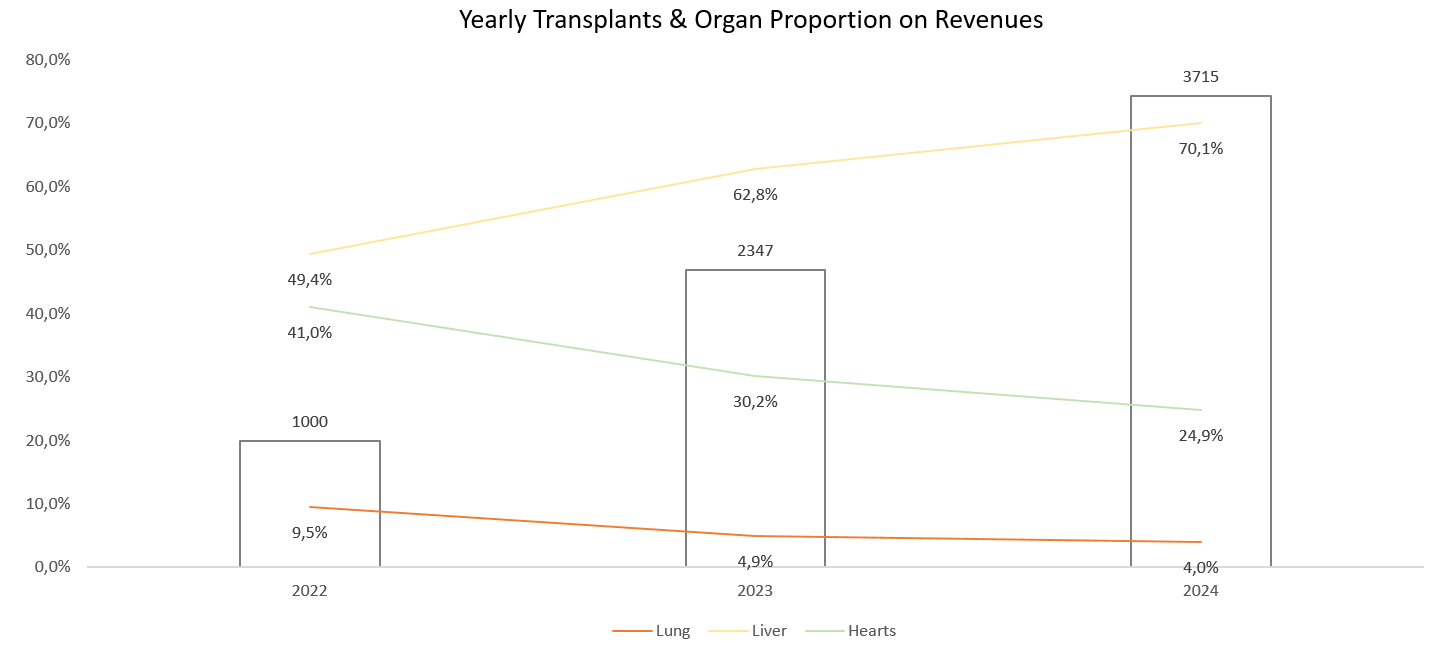Liver is obviously the biggest portion of revenue & growing as their market share is growing faster than the rest. If anything, it highlights the quality of the product & the opportunity once lungs & hearts new OCS are approved & commercialized.