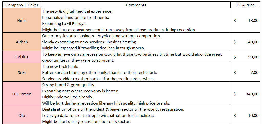 I will try & focus on Hims & Celsius as the position in both is still small and needs to grow, and will certainly add some Lululemon around $250 as earnings are in two weeks and the stock is giving some positive action.