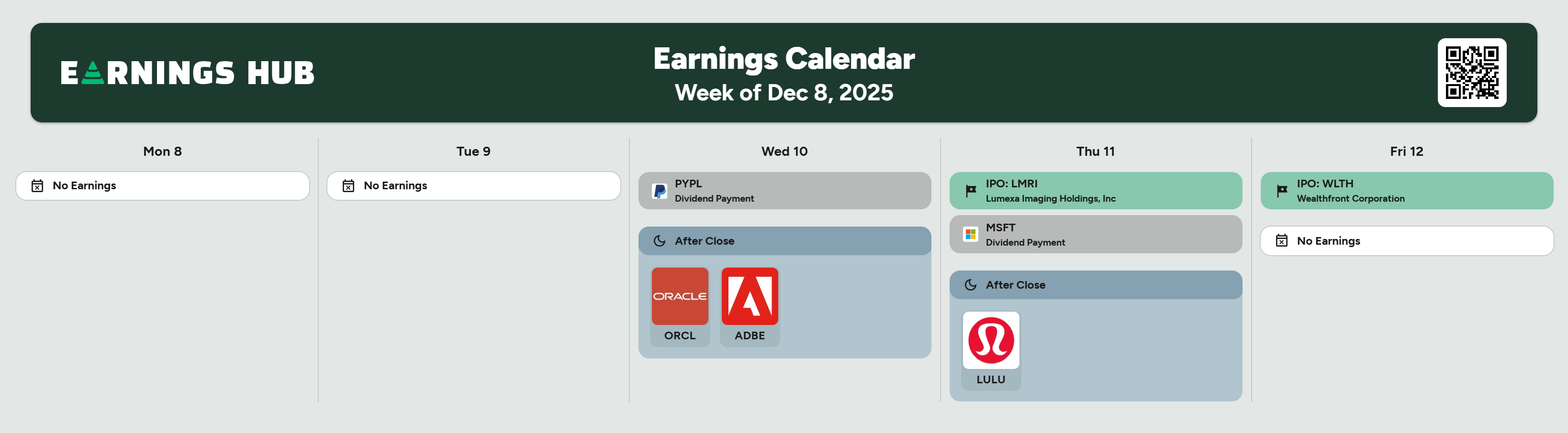 We also have both Adobe and Lululemon reporting this week, and both are on the watchlist which means they’ll be covered.