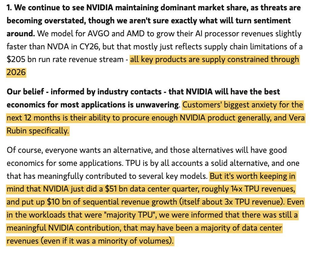 We’re also getting comments about Google’s TPUs and why demand is rising. Spoiler: it’s not because companies are choosing them over Nvidia. It’s because the overall demand is so enormous that clients are forced to use anything they can get. Something we also talked about after the Meta rumor.