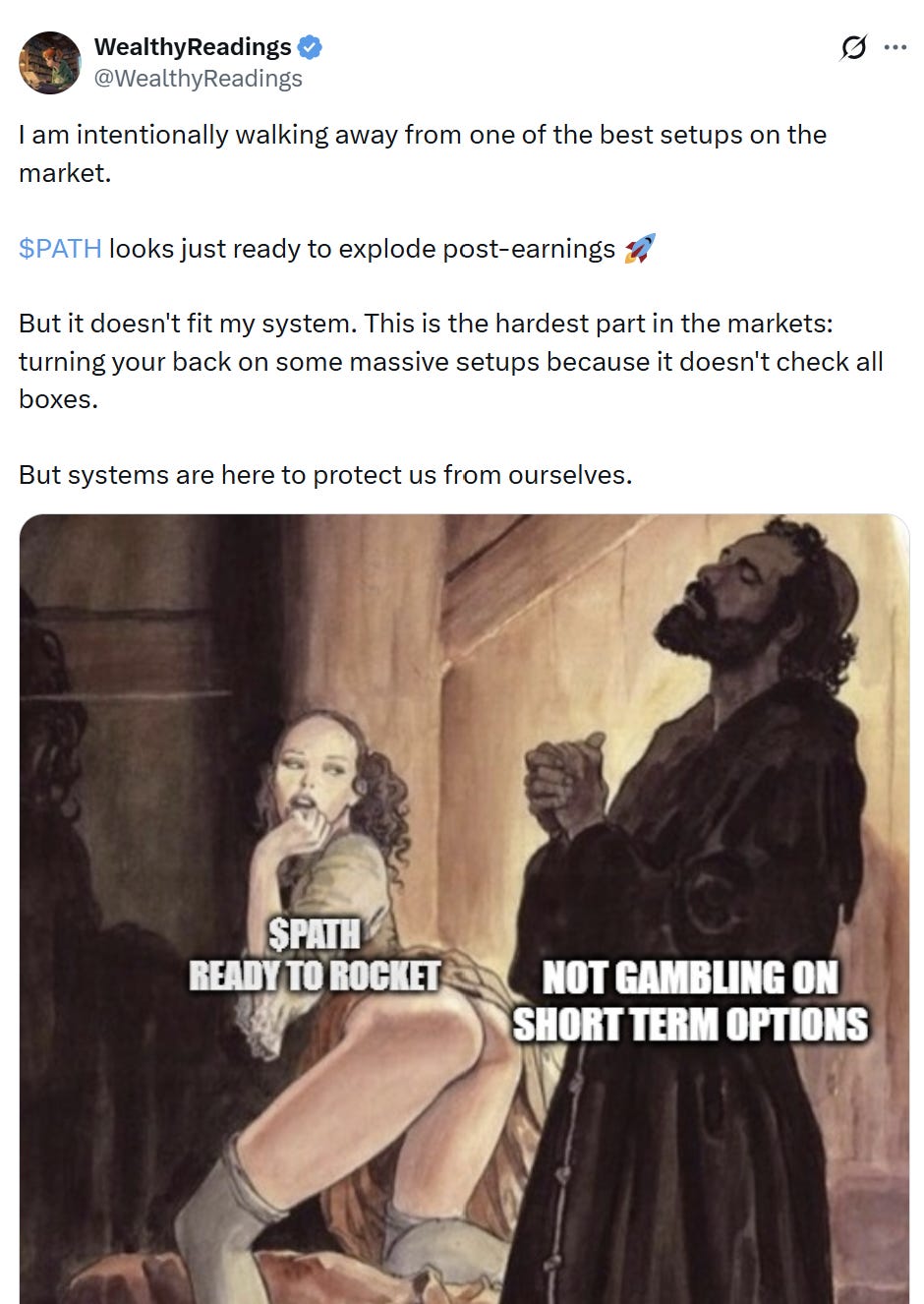 Sometimes your own rules protect you 90% of the time and frustrate you 10%. It is what it is. But the call was right & would be up 3–4x by now if taken earlier, so yes… still hurts.