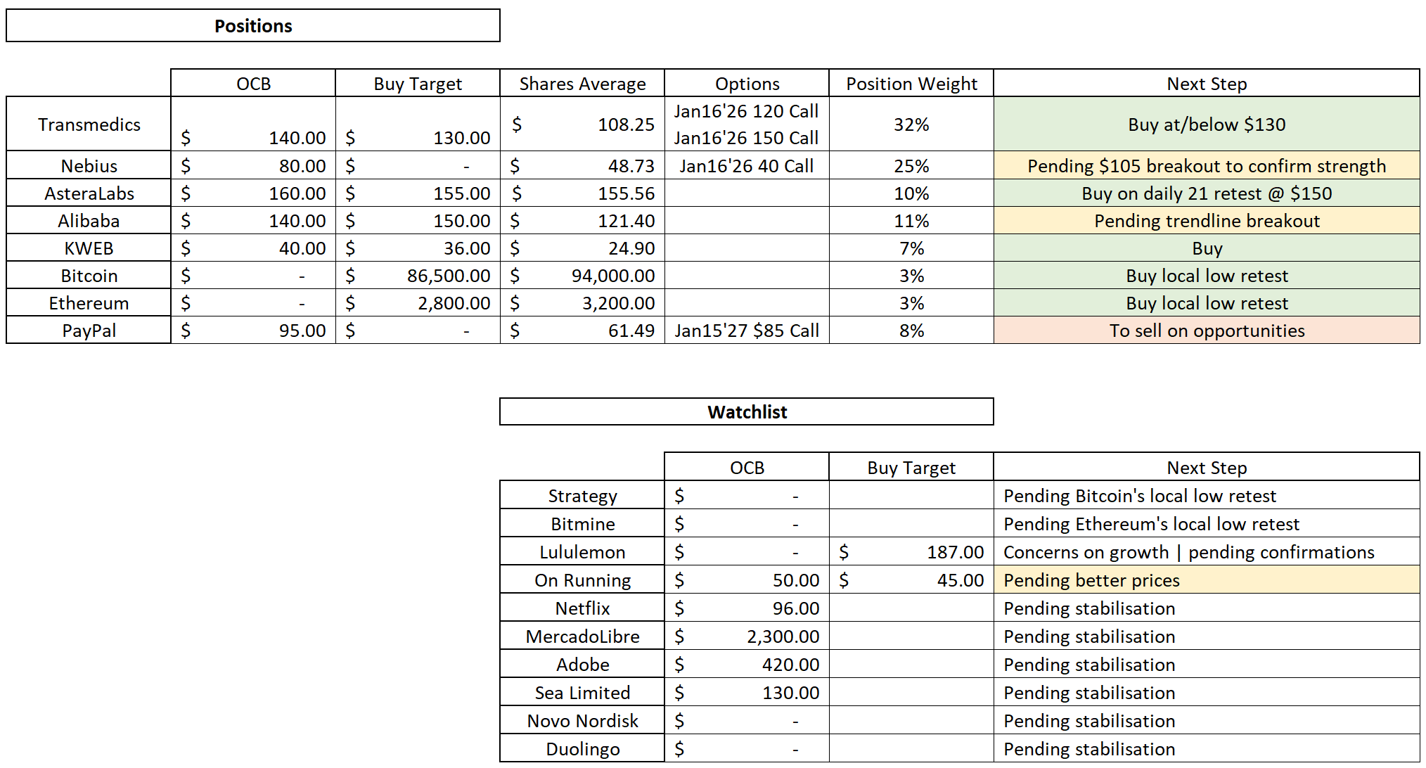 Here’s my watchlist and buying plan, for both current positions and the watchlist. First time with this format, I’ll improve it as we go. As always, buys & sells are free to access in my public portfolio.