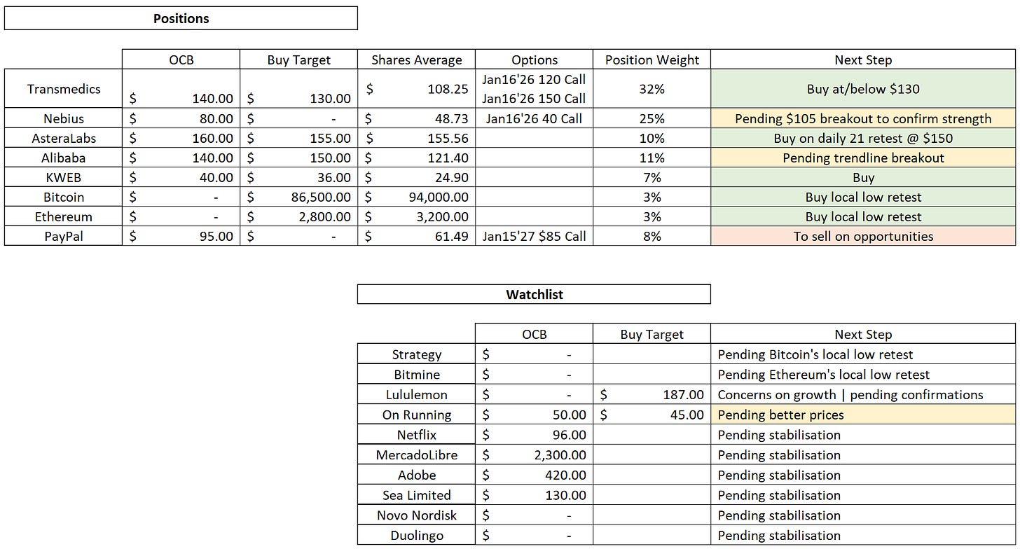 Right now, my watchlist includes: Strategy, Bitmine, Lululemon, MercadoLibre, On Running, UIPath, Netflix, Adobe, Sea Limited, Novo Nordisk and Duolingo.