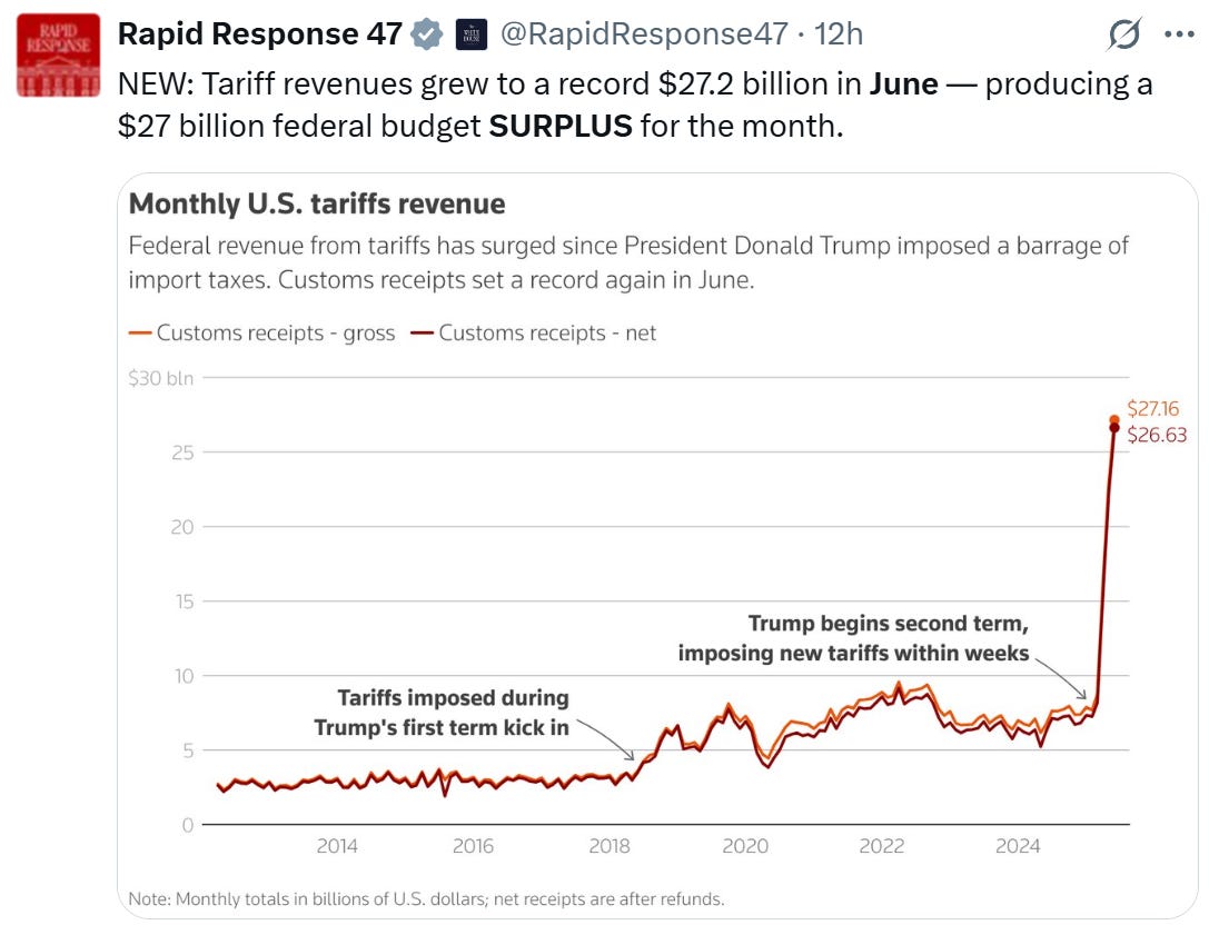 I also would like to put things in perspective: June’s expenses only for interest on debt totaled $84B. This is to say that sure, tariffs will bring in revenues but they were never the solution to end the deficit - for those who still believe it is possible. You know my opinion on this: it isn’t possible & won’t happen.