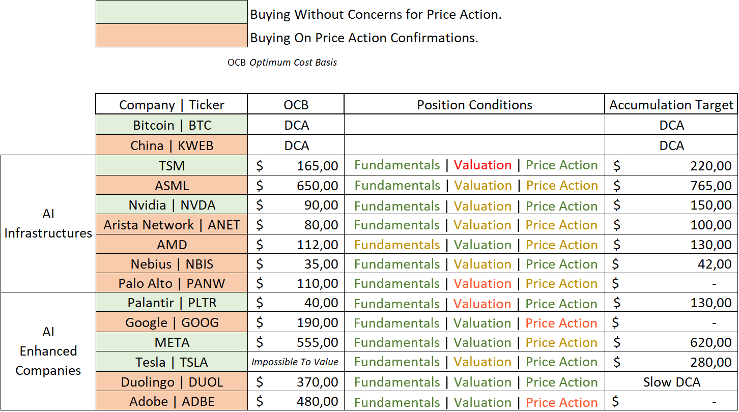 Here is my watchlist & buying plan. Reaching those prices do not mean I always pull the trigger, those are only my view of valuation & price action today, I only pull the triggers on the ones I believe to be the best liquidity attribution at the moment - purchases are shared on my savvy B&H portfolio.