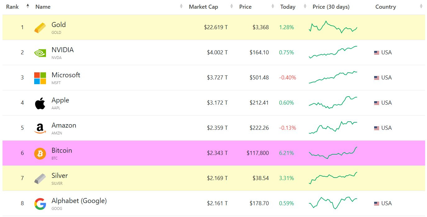 That being said, the asset reached an all-time high & now flirts with $120,000. I shared on X this screenshot with a comment saying that Bitcoin was a 10x from here to reach Gold’s capitalisation. And this isn’t meant to be provocative.