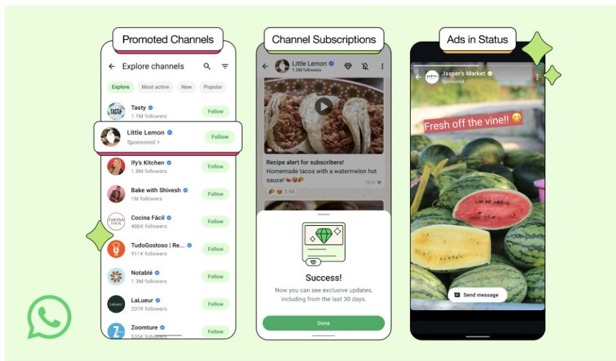 The messaging platform is finally being seriously monetized through three methods: promoted channels (channel users will pay for it), subscriptions (to those channels on which Meta will take a fee), and ads in status - the Instagram story equivalent. The platform also already has its paid business plans.