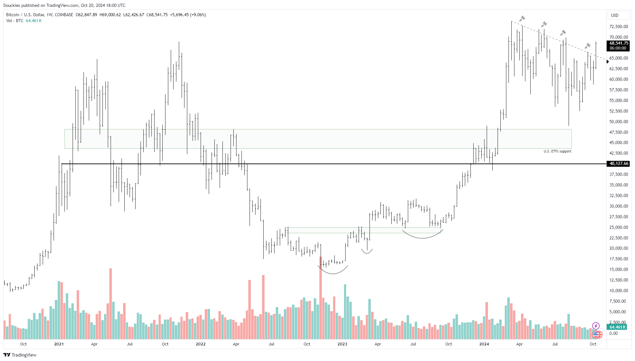 Bitcoin broke its famous trendline and will apparently close the week around $68,000.