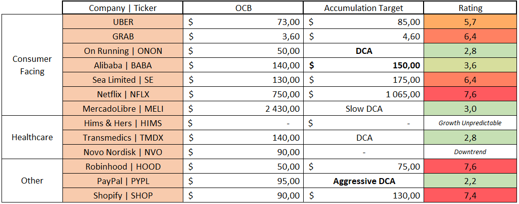 Here is my watchlist & buying plan. Reaching those prices does not mean I always pull the trigger; those are only my view of valuation & price action today. I only pull the triggers on the ones I believe to be the best liquidity attribution at the moment - purchases are shared on my Savvy B&H portfolio.