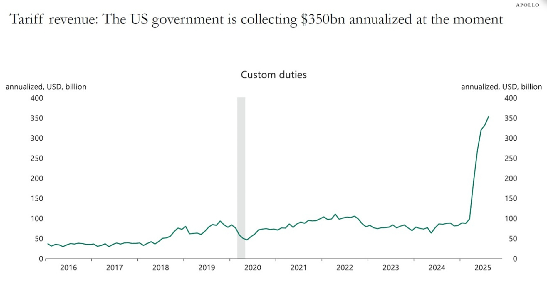 That inflationary pressure comes from tariffs which are creating massive revenues to the government, but will trigger price hikes.