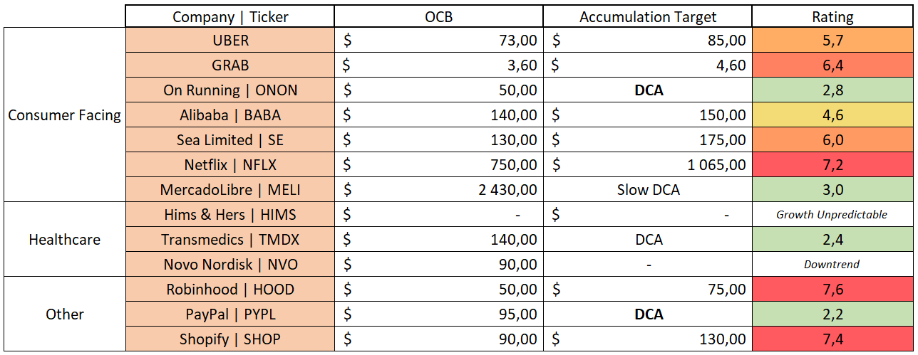 Here is my watchlist & buying plan. Reaching those prices does not mean I always pull the trigger; those are only my view of valuation & price action today. I only pull the triggers on the ones I believe to be the best liquidity attribution at the moment - purchases are shared on my Savvy B&H portfolio.