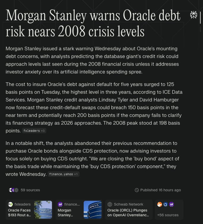 One example of pessimism is Morgan Stanley’s memo on Oracle’s debt structure and its potential risks.